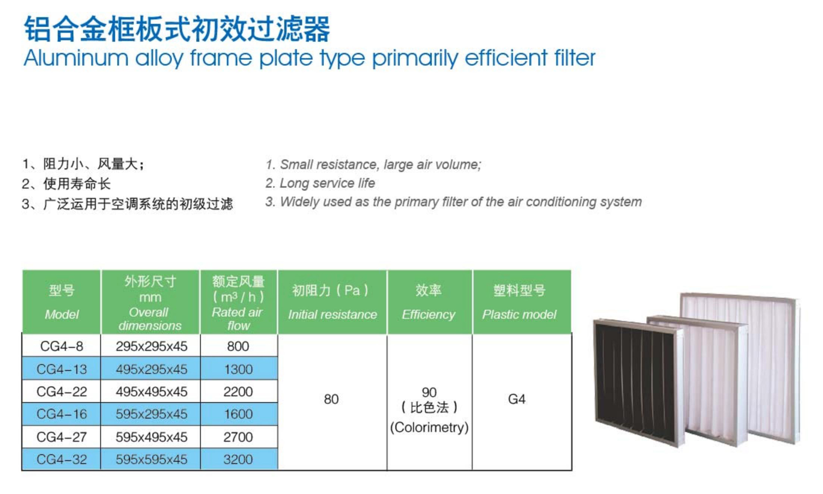 鋁合金框板式初效過濾器